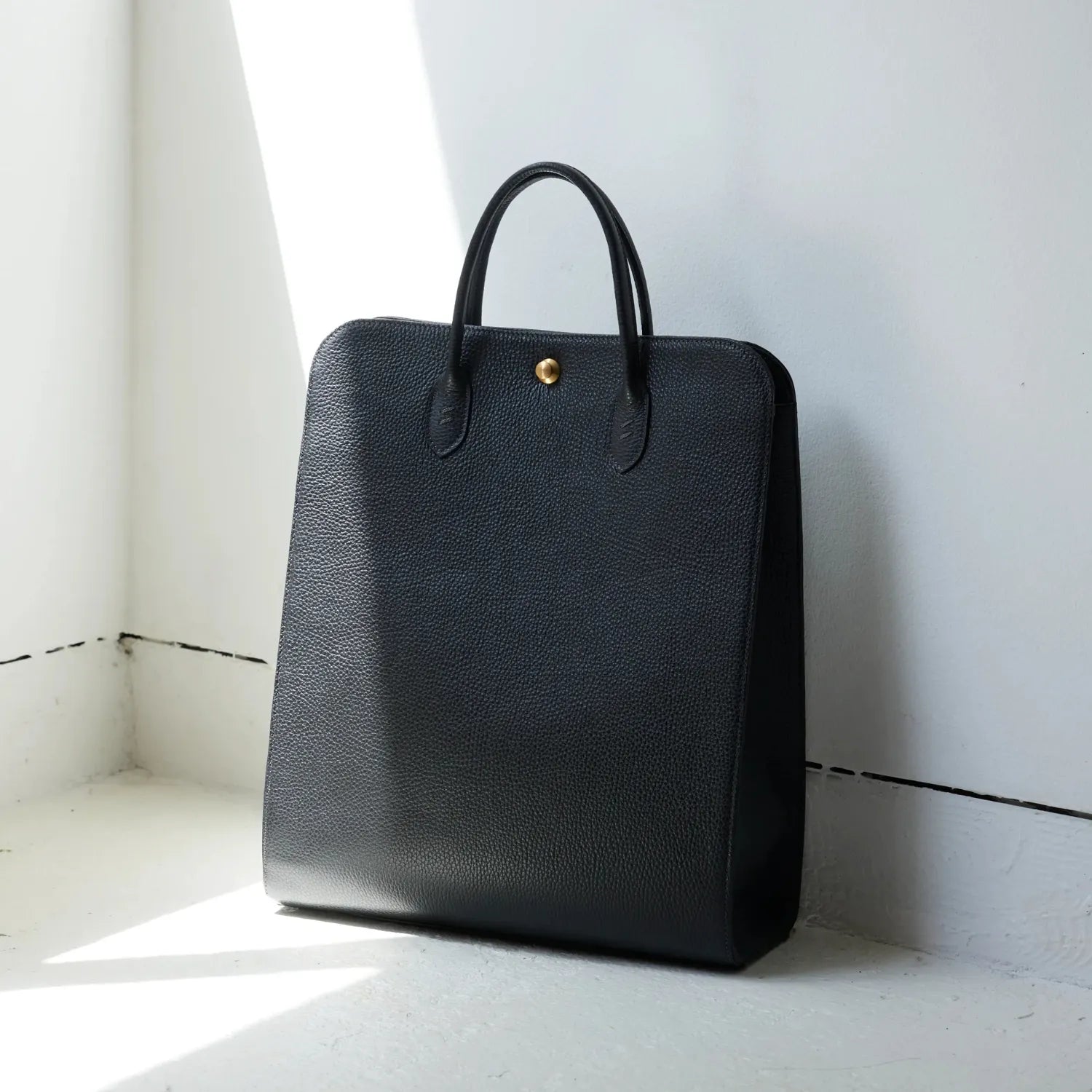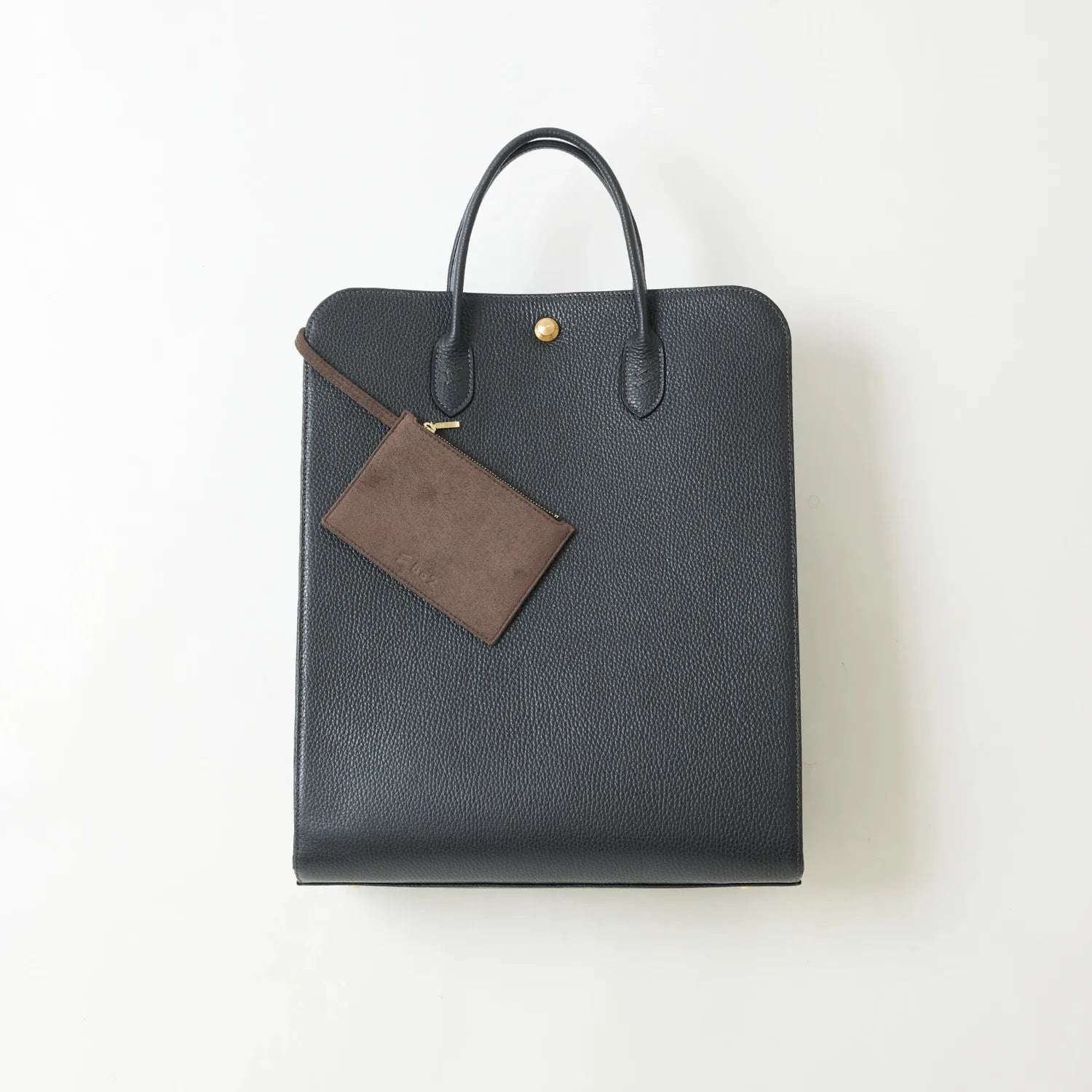 使い心地を探求し、PCなどを入れやすい縦型で、角を無くしたユニークなシェイプ。手に持った時のスタイルもスマートに決まります。