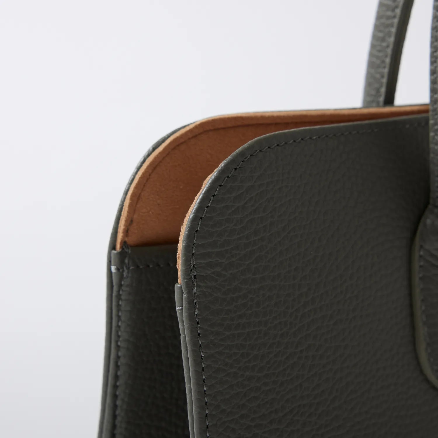 使い心地を探求し、PCなどを入れやすい縦型で、角を無くしたユニークなシェイプ。手に持った時のスタイルもスマートに決まります。